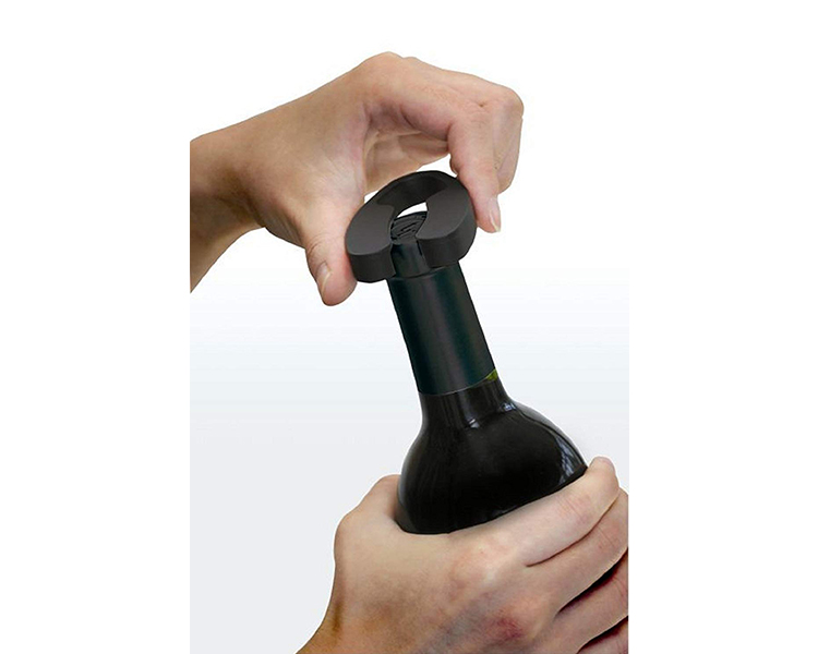 - Opens a bottle of wine in just seconds with push button ease