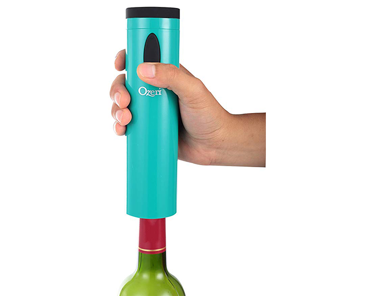 Introducing the Ozeri Fascina Electric Wine Opener. Capable of opening up to 60 bottles on a single set of inexpensive AAA batteries, the Fascina requires no more effort than pushing a button for cork removal. The Ozeri Fascina Electric Wine Opener is completely cordless and includes a compact and integrated foil cutter that removes easily. Capable with both natural and synthetic corks, the Fascina boasts an ultra light-weight design for effortless handling. Using the Ozeri Fascina Bottle Opener couldn't be easier. Start by using the included foil cutter to remove the wine bottle seal. Simply press the Down button to activate cork removal. Then press the Up button to release the cork. Voila. Impress and entertain while opening your next bottle of wine, with the Ozeri Fascina Electric Wine Opener. Runs on 6 AAA batteries (included). Your satisfaction is guaranteed.