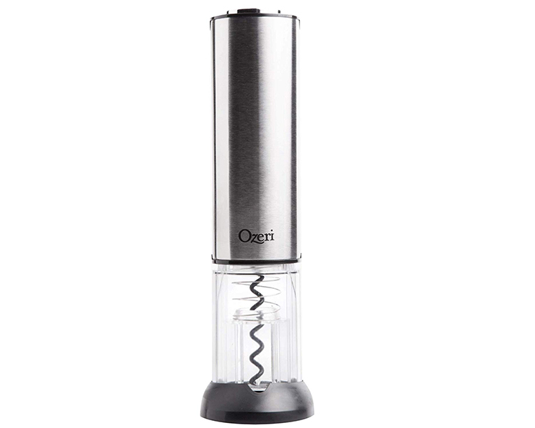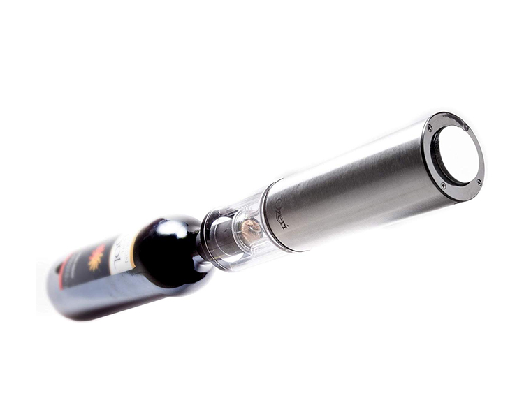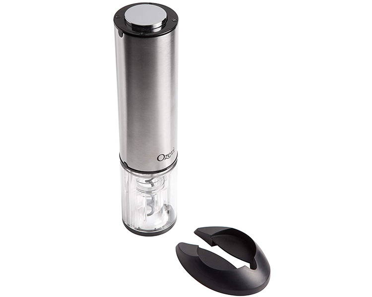 The Ozeri Extravo Electric Wine Opener in Stainless Steel with Auto Activation was inspired by a vision for effortless operation. The new and innovative Extravo auto-activates with a mere gentle nudge down on the cork. Once the cork has been removed from the wine bottle, the simple act of lifting up the Extravo activates a reverse spin and the cork is automatically ejected within seconds. With its elegant stainless steel material, the Ozeri Extravo Electric Wine Opener impresses guests both in style and function. Capable at home and in restaurants, the Extravo's built-in rechargeable battery opens up to 60 wine bottles on a single charge. For those who prefer using a button to activate the electric motor, the Extravo also features a button on its top. The Ozeri Extravo Electric Wine Opener is completely cordless and includes compact foil cutter that doubles as a stand. It also ships with a bonus wine pourer and stopper. The Ozeri Extravo Electric Wine Opener with Auto Activation opens both natural and synthetic corks. It boasts a stainless-steel exterior, button-free operation, a fast corkscrew motor for effortless handling. Use it at home or take it with you to impress your hosts and guests before the first sip.