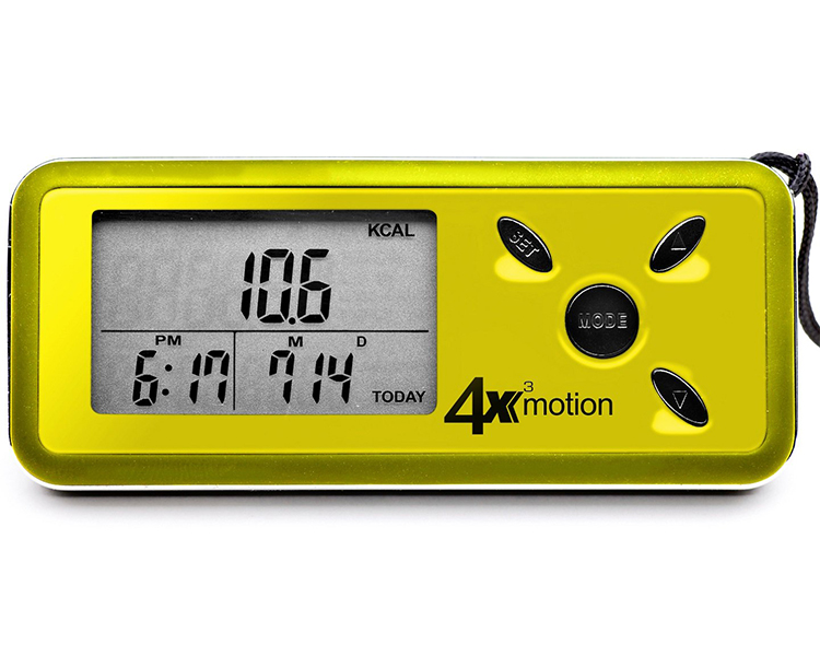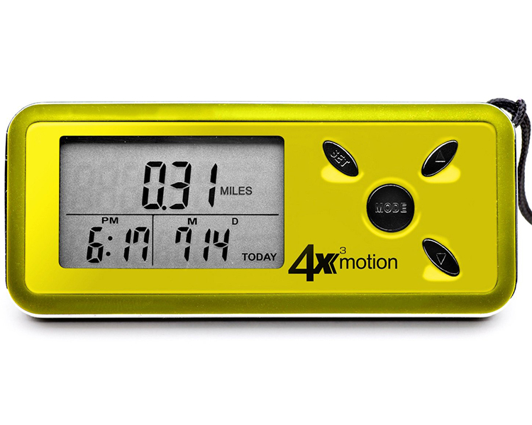 Compact, sleek and ultra slim, the 4x3motion Digital Pedometer fits is any pocket and is the ultimate personal trainer. Used by professional 100 mile ultra runners such as Evan Kimber, the 4x3motion Digital Pedometer records your steps, distance, average speed, calories burned, and time spent exercising, and displays your data on a new bright LCD with a night view backlight. The 4x3motion Digital Pedometer filters out vibrations and only begins counting after it detects a sequence of continuous steps for greater accuracy. The 4x3motion Digital Pedometer ships with a Lithium battery, a bonus strap and instruction manual. Your satisfaction is 100% guaranteed.
