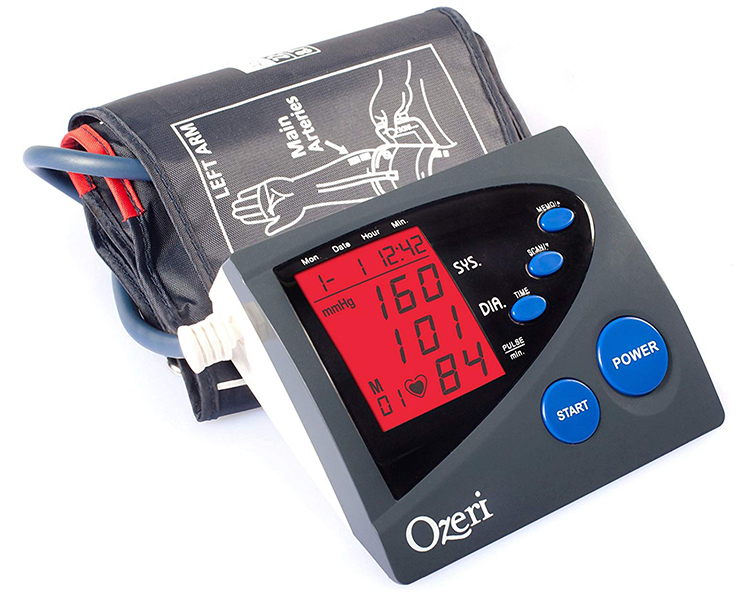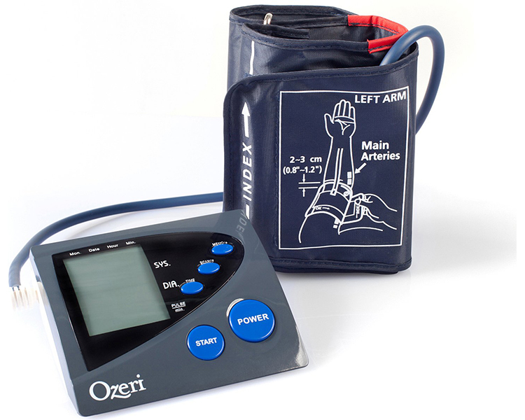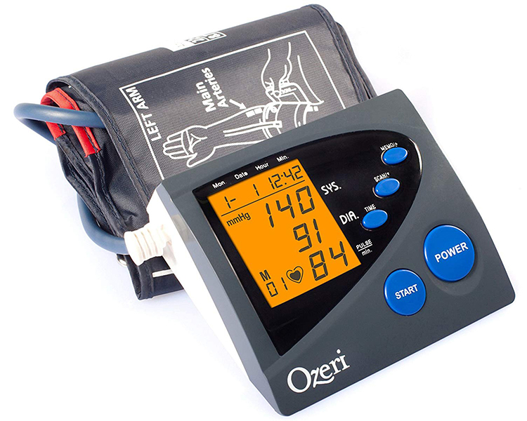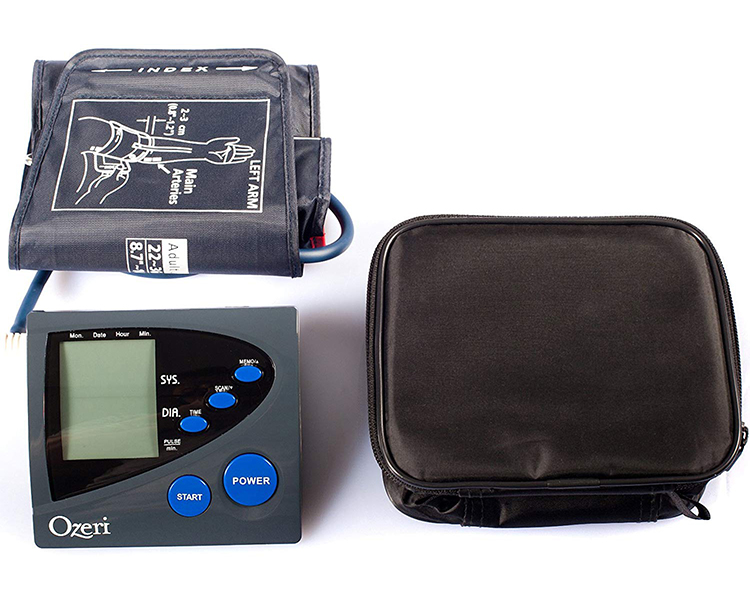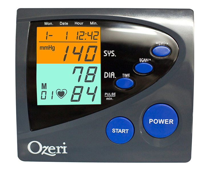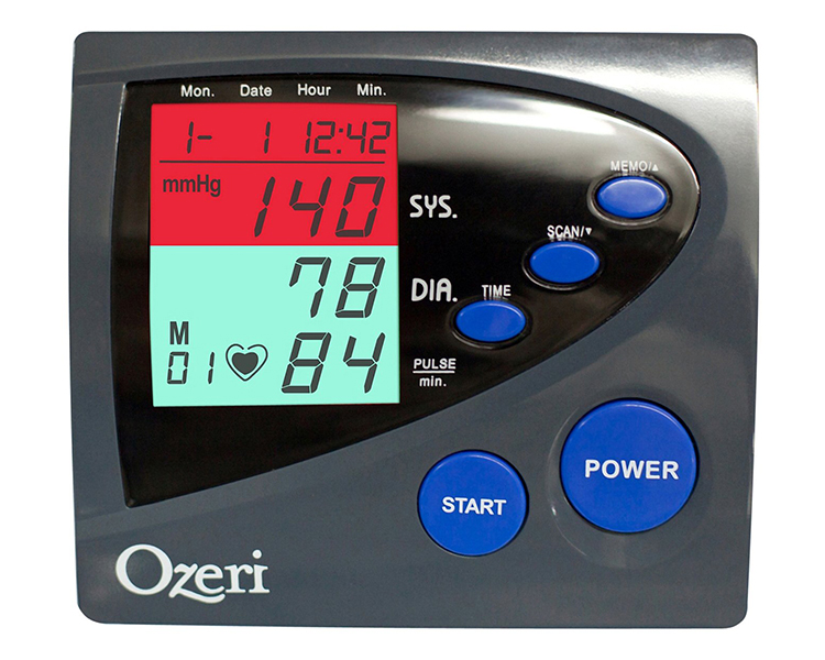 The Ozeri CardioTech Premium Series Digital Blood Pressure Monitor stores up to 1197 blood pressure readings with date and time Memory recall (399 readings x 3 users), and automatically classifies each blood pressure reading according to World Health Organization hypertension guidelines with a new Color Alert LCD that color codes the systolic and diastolic readings according to green (normal), orange (prehypertension) and red (hypertension) levels. It also calculates average blood pressure readings based on the 3 most recent readings, and detects irregular heart (Arrhythmia) for an improved understanding of your heart's health. Compact, portable and simple-to-use, the Ozeri CardioTech Blood Pressure Monitor is backed by a 5 year warranty and ships with 4 AA batteries, a carrying case and user manual.