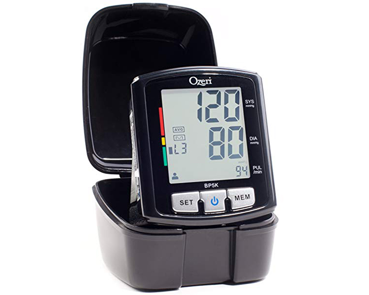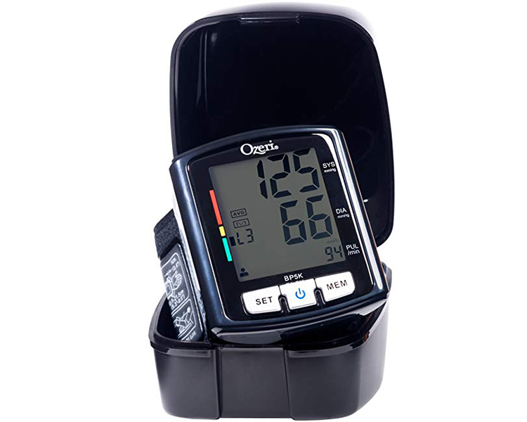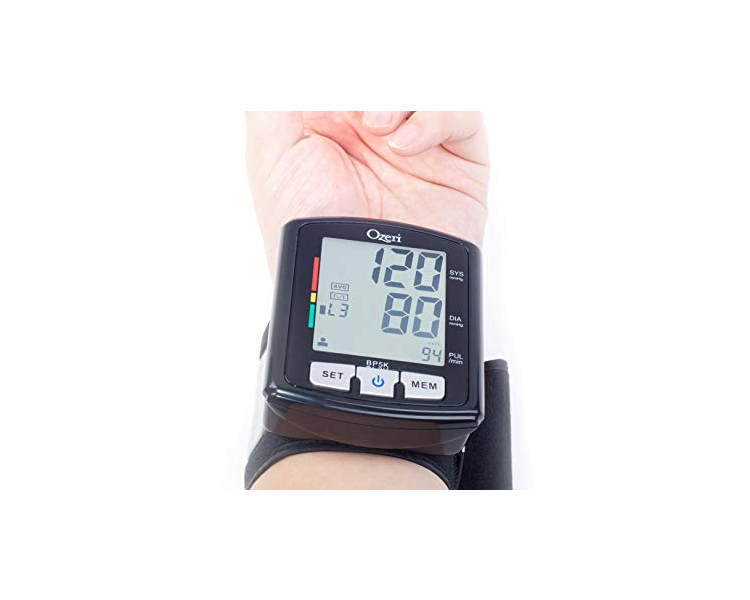 Compact, portable and simple-to-use, the Ozeri CardioTech BP5K Blood Pressure Monitor is an advanced wrist cuff monitor with a new intelligent voice-guided feature that alerts you to the proper positioning of your wrist for accurate blood pressure measurements. The audible voice also automatically provides a hypertension assessment after displaying the systolic and diastolic measurements on its large easy-to-read LCD. With ample memory, the Ozeri CardioTech Blood Pressure Monitor stores up to 180 blood pressure readings with date and time memory recall (90 readings x 2 users), and automatically classifies each blood pressure reading according to World Health Organization hypertension guidelines.