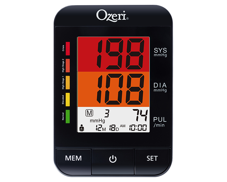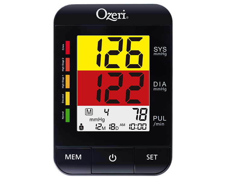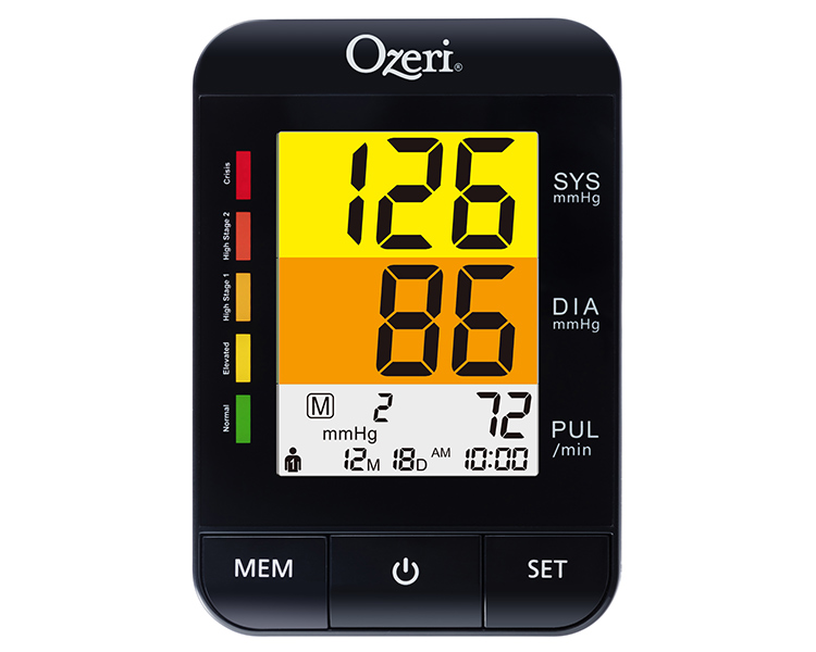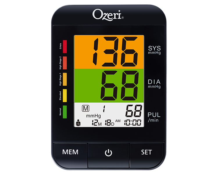 - Utilizes a split-screen LCD to take the worry out of interpreting numbers with 5 intuitive SYS and DIA colors from green (normal) to red (crisis).