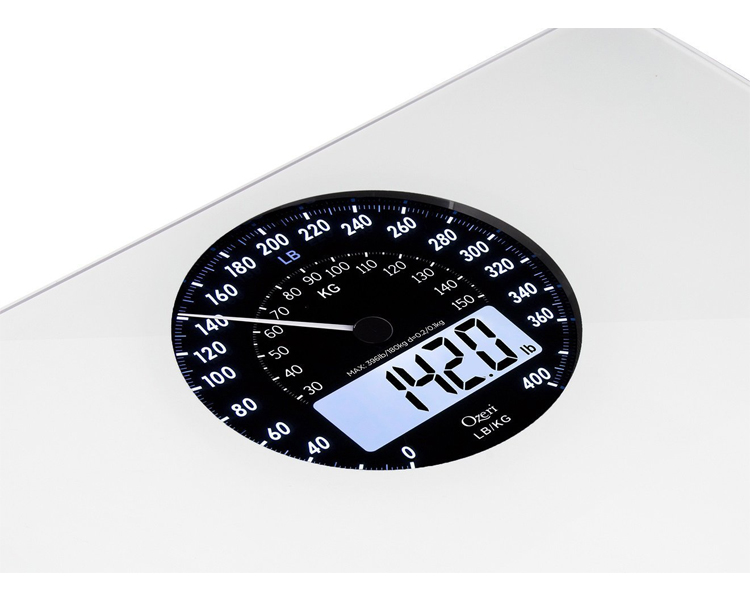 - Synchronized electro-mechanical Dial and LCD automatically illuminate and instantly point to your weight in lbs and kg, for easy-to read results in all light conditions and from any angle.