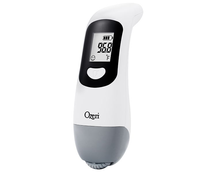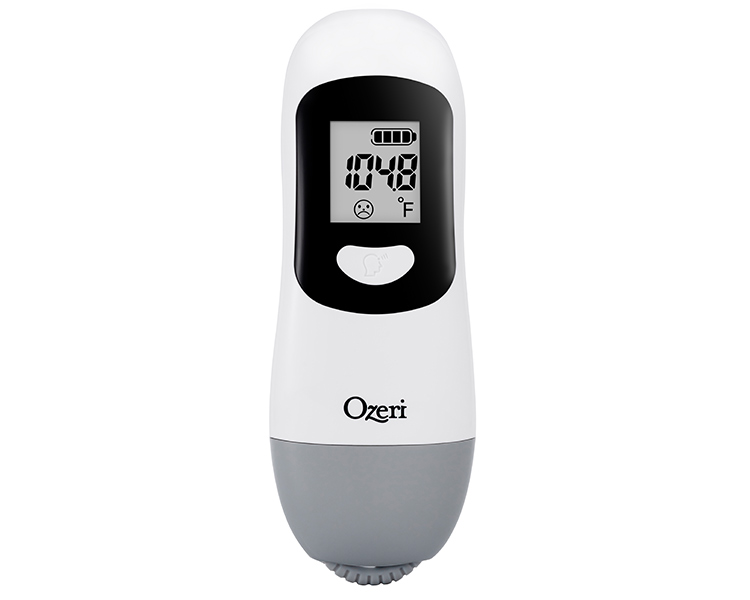 Requiring a simple scroll of the bottom wheel, the Ozeri Kinetic Non-contact Forehead Thermometer converts kinetic energy into a digital charge so that you can accurately check for fever or measure an object’s temperature without ever needing to search for batteries. A few slides of the kinetic wheel conveniently located at the bottom of the thermometer is all it takes to generate a sufficient charge and take an accurate measurement of body temperature. The Ozeri Kinetic Thermometer is designed for both children and adults, and once charged via its kinetic motion technology, generates a precise measurement in as little as a second. The Ozeri Kinetic Thermometer utilizes infrared technology for touchless measuring, without ever requiring contact, for shared and sanitary use. Results are displayed in either Fahrenheit or Celsius to the nearest 0.1°F / 0.1°C, with a measuring range of 93.2°F ~ 109.4°F (34°C ~ 43°C). Though battery-free, the Ozeri Kinetic Thermometer offers all the benefits of modern digital thermometers via its clear LCD that displays measurement results and charge status. Its LCD additionally displays a smiley or frowning face based on the detection of a normal temperature or fever. The Ozeri Kinetic Thermometer generates an audible single beep to confirm a normal temperature, and a long beep followed by a short one as an alarm to indicate the detection of a fever. Clinically validated, and manufactured to ISO 80601-2-56, IEC/EN 60601-1 and IEC/EN 60601-1-2 medical standards, the battery-free Ozeri Kinetic Non-contact Forehead Thermometer is backed by Ozeri’s No-Hassle Warranty, with your satisfaction guaranteed.