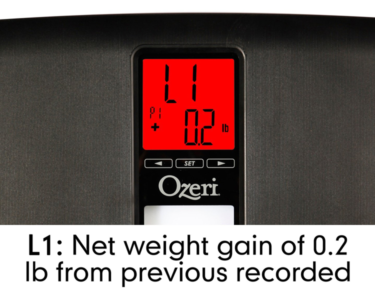 The Ozeri WeightMaster II 440 lbs Digital Bathroom BMI Scale with Weight Change Detection was designed and engineered in the USA to provide a comprehensive yet simple weight management solution to measure and track your weight. Featuring BMI Measurement and Auto Recognition Technology, the Ozeri WeightMaster II weighs up to 440 lbs and displays your BMI (Body Mass Index), a measure of your body fat based on your height and weight. Immediately after displaying your weight and BMI, the scale’s Weight Change Detection displays your “net weight change” from your last weigh-in (L1), the average of your last 3 weigh-ins (L3), last 7 (L7), and last 30 weigh-ins (L30). By measuring your weight once a day, the Ozeri WeightMaster II empowers you to see how your current weight changes day to day, from the last 3 days, the previous week and the previous 30 days. For users who would rather just focus on their weight trend without worrying so much about the actual numbers, the WeightMaster II features Color Alert Technology, which displays your weight change in a GREEN illumination for weight loss and RED for weight gain, providing a visual form of intuitive feedback.