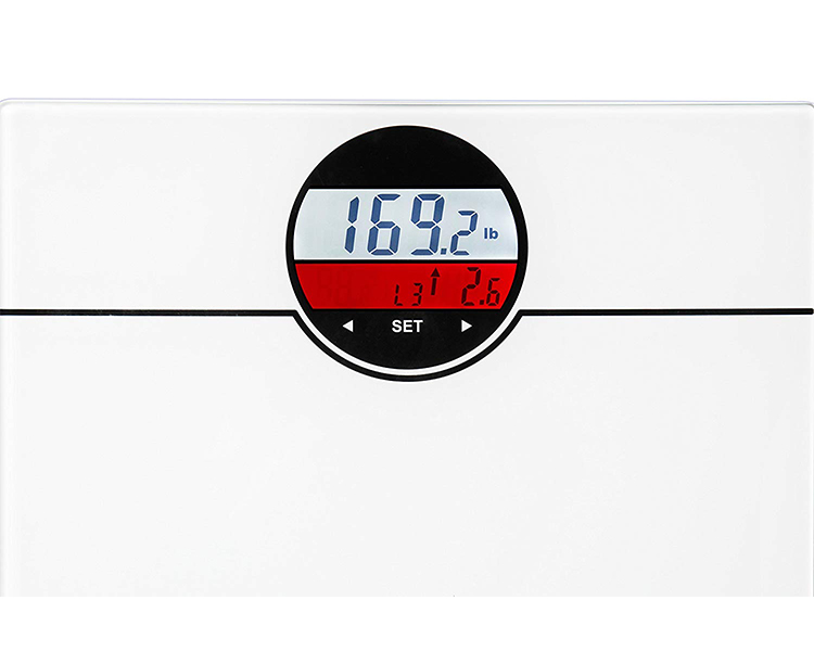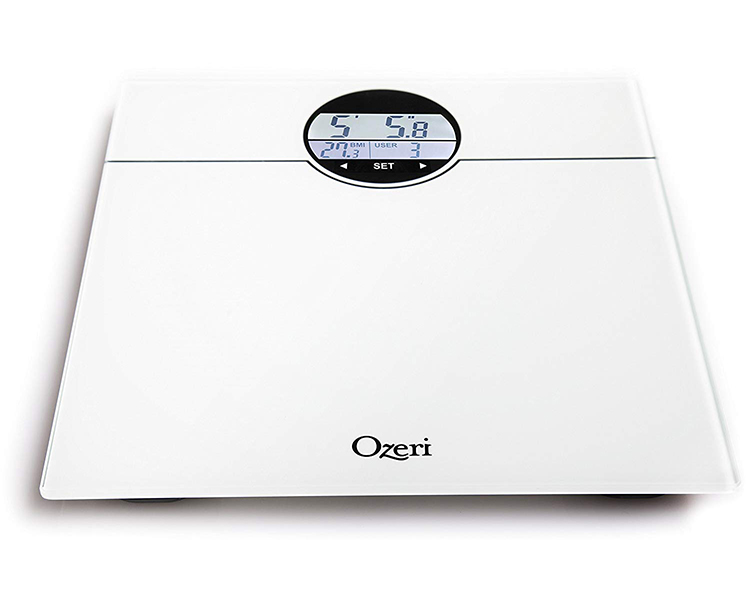 The Ozeri WeightMaster 400 lbs Digital Bath Scale with BMI and Weight Change Detection was designed and engineered in the USA to provide a comprehensive yet simple weight management solution to measure and track your weight. Featuring BMI Measurement and Auto Recognition Technology, the Ozeri WeightMaster weighs up to 400 lbs and displays your BMI (Body Mass Index), a measure of your body fat based on your height and weight. Immediately after displaying your weight and BMI, the scale’s Weight Change Detection displays your “net weight change” from your last weigh-in (L1), the average of your last 3 weigh-ins (L3), and last 7 weigh-ins (L7).