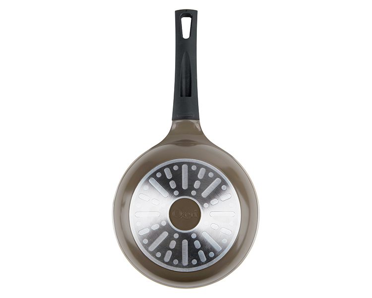 Utilizing pure ceramic as a coating, the Green Ceramic Pan by Ozeri achieves non-stick perfection while remaining absolutely free of PTFE, PFAS and GenX chemicals (APEO, PFBS, PFOS, PFOA). Conventional cookware and other ceramic cookware brands achieve their non-stick performance through a coating of PTFE, a synthetic substance that has waxy properties. At very high temperatures, PTFE can begin to decompose and release fumes which are documented to be lethal to birds and small pets, and which can be harmful to humans. Although acids PFOA and PFOS have been generally phased out of cookware production as persistent pollutants, non-stick coatings today are often made with the aid of a new generation of advanced fluoropolymers, known as GenX fluorinated chemicals and PFBS. Data from research on these chemicals shows that they are suggestive of cancer and when orally consumed, these chemicals may be harmful to health. The Green Ceramic Pan's 100% ceramic coating is completely free of PTFE, PFAS and GenX fluoropolymers. With exceptional non-stick properties, the Green Ceramic Pan by Ozeri allows you to saute, fry, bake, boil and braise with as little as half the amount of oil normally used, and it makes cleaning a breeze. The Green Ceramic Pan by Ozeri is made of the highest quality die-cast aluminum that allows for even cooking and fantastic browning without the risk of hot spots. It boasts a magnetized bottom for rapid heat transfer on induction stoves, and a heat resistant Bakelight handle.