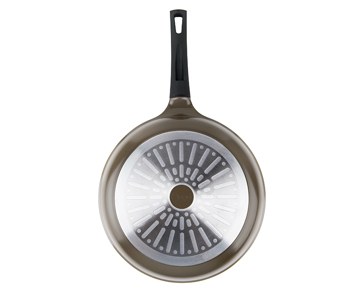 Utilizing pure ceramic as a coating, the Green Ceramic Pan by Ozeri achieves non-stick perfection while remaining absolutely free of PTFE, PFAS and GenX chemicals (APEO, PFBS, PFOS, PFOA). Conventional cookware and other ceramic cookware brands achieve their non-stick performance through a coating of PTFE, a synthetic substance that has waxy properties. At very high temperatures, PTFE can begin to decompose and release fumes which are documented to be lethal to birds and small pets, and which can be harmful to humans. Although acids PFOA and PFOS have been generally phased out of cookware production as persistent pollutants, non-stick coatings today are often made with the aid of a new generation of advanced fluoropolymers, known as GenX fluorinated chemicals and PFBS. Data from research on these chemicals shows that they are suggestive of cancer and when orally consumed, these chemicals may be harmful to health. The Green Ceramic Pan's 100% ceramic coating is completely free of PTFE, PFAS and GenX fluoropolymers. With exceptional non-stick properties, the Green Ceramic Pan by Ozeri allows you to saute, fry, bake, boil and braise with as little as half the amount of oil normally used, and it makes cleaning a breeze. The Green Ceramic Pan by Ozeri is made of the highest quality die-cast aluminum that allows for even cooking and fantastic browning without the risk of hot spots. It boasts a magnetized bottom for rapid heat transfer on induction stoves, and a heat resistant Bakelight handle.