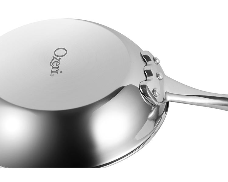Featuring ETERNA -- a safe and durable non-stick coating developed in the USA, the Stainless Steel Pan by Ozeri is the world’s first stainless steel frying pan to achieve non-stick perfection without using PFOA or APEO -- harmful chemicals often found in traditional cookware. Conventional pans achieve their non-stick performance with the aid of PFOA (PerFluoroOctanoic Acid), a potential carcinogen which the EPA has classified as a 'persistent pollutant of the environment', and APEO (Alkylphenol ethoxylates), which are under restricted use in Germany due to environmental concerns about their poor biodegradability and toxicity in the food chain. According to the EPA, once ingested, PFOA is capable of remaining in people for a very long time, and has been shown to cause developmental and other adverse effects in laboratory animals. Likewise, European studies have shown that APEO may be toxic to aquatic life, and has the potential to act as endocrine disrupters. With the Stainless Steel Pan’s ETERNA coating, even under high temperatures, no controversial perfluorinated chemicals are ever released into the environment. This is because the Stainless Steel Pan utilizes a safer non-stick coating that is completely free of PFOA, and far more durable and scratch-resistant than other non-stick surfaces. With better non-stick properties, the Stainless Steel Pan allows you to saute, fry, bake, boil and braise with as little as half the amount of oil normally used, and cleaning is a breeze. The Stainless Steel Pan by Ozeri is made of the highest quality stainless steel with TriPly construction, delivering the ultimate in heat conductivity for even cooking and browning without hot spots. It boasts a magnetized bottom for rapid heat transfer on induction stoves, and a polished mirror exterior. ETERNA coating made by Whitford USA. Final pan assembly in China.