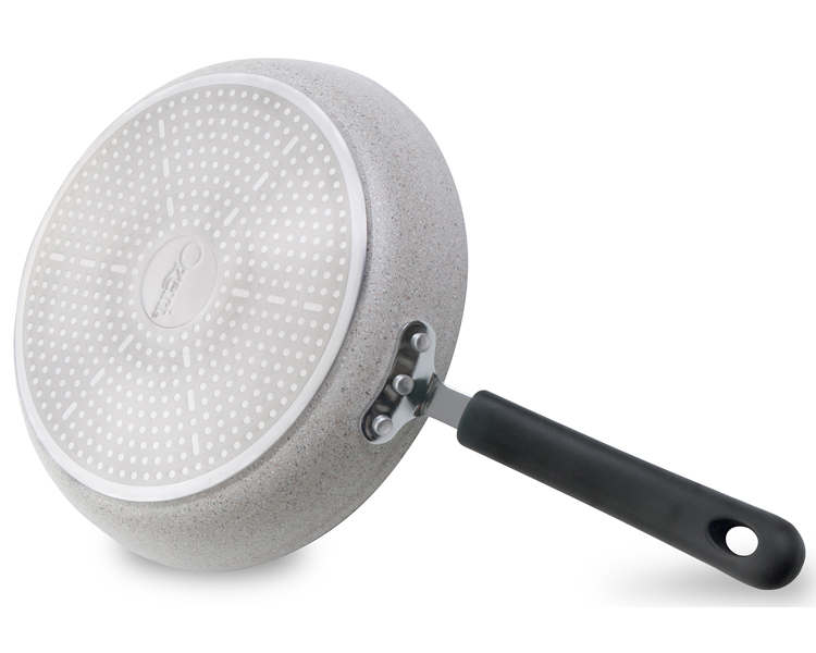 Conventional pans often achieve their non-stick performance with the aid of PFOA (PerFluoroOctanoic Acid), a potential carcinogen which the EPA has classified as a 'persistent pollutant of the environment', and APEO (Alkylphenol ethoxylates), which are under restricted use in Germany due to environmental concerns about their poor biodegradability and toxicity in the food chain. According to the EPA, once ingested, PFOA is capable of remaining in people for a very long time, and has been shown to cause developmental and other adverse effects in laboratory animals. Likewise, European studies have shown that APEO may be toxic to aquatic life, and has the potential to act as endocrine disrupters. With the Stone Pan's stone-derived coating from Germany, even under high temperatures, no such controversial chemicals are ever passed on to you, or released into the environment. This is because the Stone Pan utilizes an inert coating inspired by nature. In addition to being completely free of PFOA and APEO, the Stone Pan is also far more durable and scratch-resistant than other non-stick surfaces. With better non-stick properties, the Stone Pan consistently renders cleaning a breeze. The Stone Pan by Ozeri is made of the highest quality die-cast aluminum that allows for even cooking with maximum heat retention. It boasts a magnetized bottom for rapid heat transfer on induction stoves, and a heat resistant silicone coated handle. Your satisfaction is guaranteed. STONEHENGE coating made by Weilburger GmbH, Germany. Final pan assembly in China.