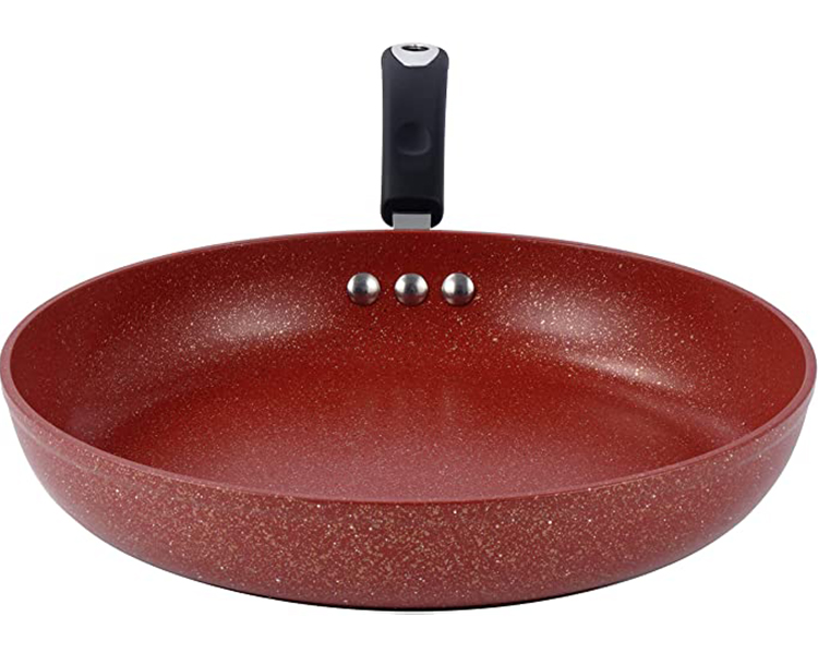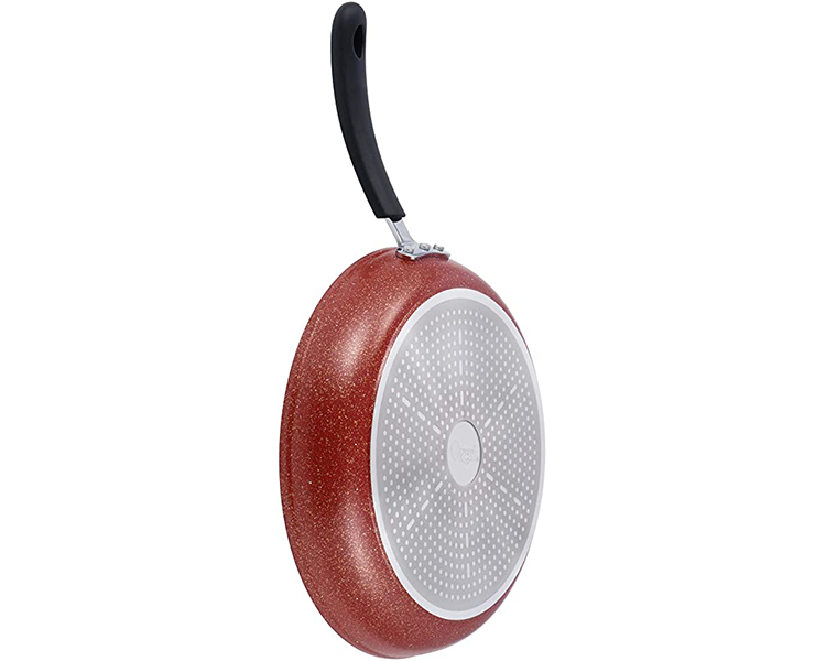 - Boasts a comfortable heat-resistant silicon coated handle that is reinforced to the pan via 3 solid rivets.