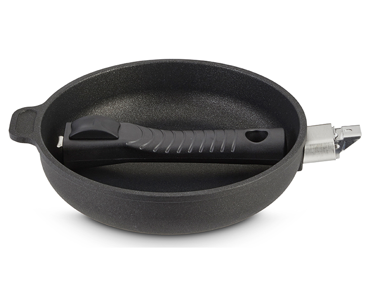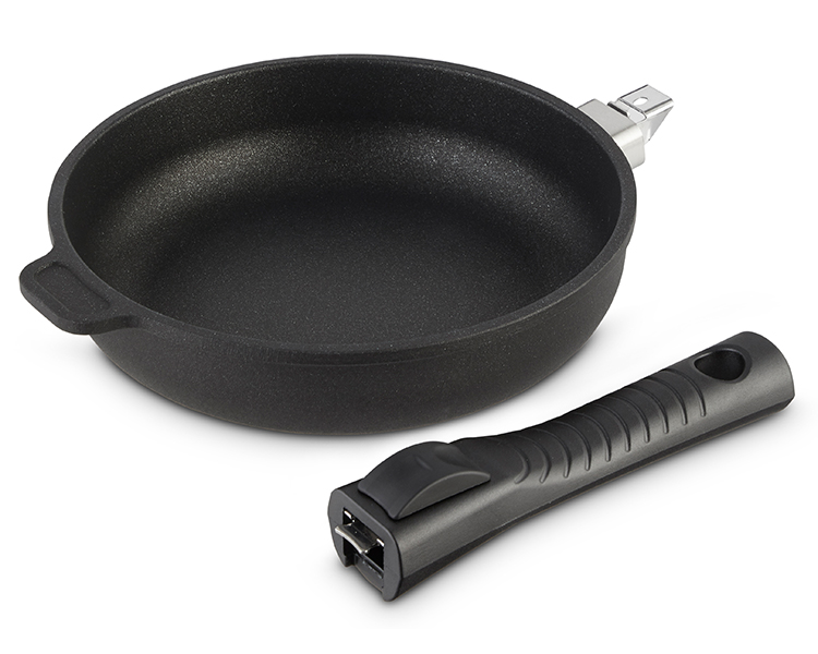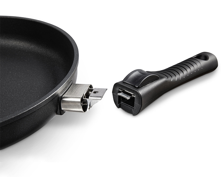 - Boasts an indestructible aluminum core that is 3 times thicker than a typical frying pan, a magnetized AISI 430 layer for use with induction stoves, and a comfortable heat-resistant handle that detaches easily, for space-saving storage.