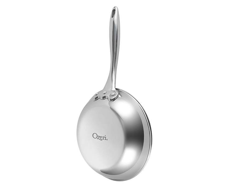 With the Stainless Steel Pan’s ETERNA coating, even under high temperatures, no controversial perfluorinated chemicals are ever released into the environment. This is because the Stainless Steel Pan utilizes a safer non-stick coating that is completely free of PFOA, and far more durable and scratch-resistant than other non-stick surfaces. With better non-stick properties, the Stainless Steel Pan allows you to saute, fry, bake, boil and braise with as little as half the amount of oil normally used, and cleaning is a breeze. The Stainless Steel Pan by Ozeri is made of the highest quality stainless steel with TriPly construction, delivering the ultimate in heat conductivity for even cooking and browning without hot spots. It boasts a magnetized bottom for rapid heat transfer on induction stoves, and a polished mirror exterior. ETERNA coating made by Whitford USA. Final pan assembly in China.