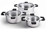 - Versatile and stackable set includes a 4.5 L (4.8 quart), 2.7 L (2.9 quart), and 1.3 L (1.4 quart) Stainless Steel pot, with Ozeri patent-pending straining and hands-free glass lids.