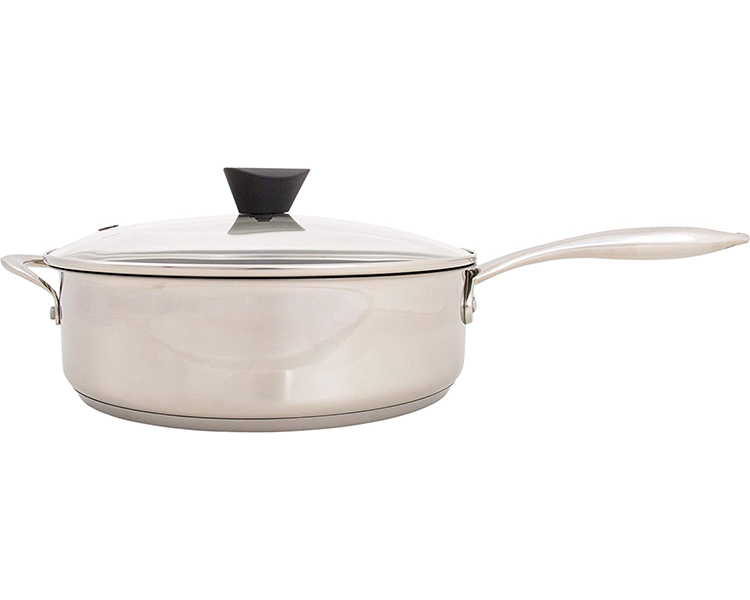 This is because the Stainless Steel Sauce Pan utilizes a safer non-stick coating that is completely free of PFOA, and far more durable and scratch-resistant than other non-stick surfaces. With better non-stick properties, the Stainless Steel Sauce Pan consistently renders cleaning a breeze. The Stainless Steel Sauce Pan by Ozeri is made of the highest quality 18/8 stainless steel with TriPly construction, delivering the ultimate in heat conductivity. It boasts a magnetized bottom for rapid heat transfer on induction stoves, and a heat-resistant handle and side helper handle for safe and comfortable handling, such as when cooking for larger family sizes. The All-In-One Stainless Steel Sauce Pan by Ozeri is elegantly finished in a polished mirror exterior, and includes a tempered glass lid with a steam-release vent and heat-resistant knob. ETERNA coating made by Whitford USA. Sauce pan assembled in China.