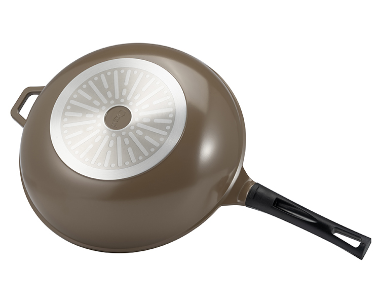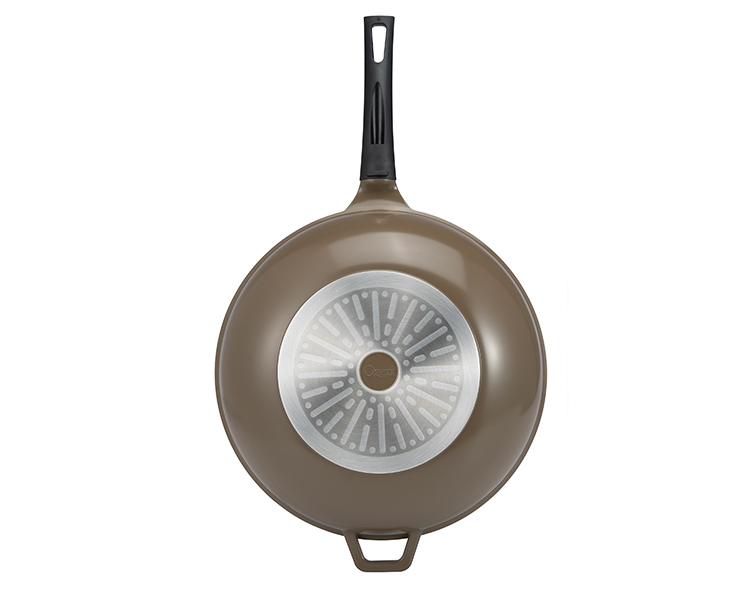 Utilizing pure ceramic as a coating, the Green Ceramic Wok by Ozeri achieves non-stick perfection while remaining absolutely free of PTFE, PFAS and GenX chemicals (APEO, PFBS, PFOS, PFOA). Conventional cookware and other ceramic cookware brands achieve their non-stick performance through a coating of PTFE (PolyTetraFluoroEthylene), a synthetic substance that has waxy properties. At very high temperatures, PTFE can begin to decompose and release fumes which are documented to be lethal to birds and small pets, and which can be harmful to humans. Although acids PFOA and PFOS have been generally phased out of cookware production as persistent pollutants, non-stick coatings today are often made with the aid of a new generation of advanced fluoropolymers, known as GenX fluorinated chemicals and PFBS. Data from research on these chemicals shows that they are suggestive of cancer and when orally consumed, these chemicals may be harmful to health. The Green Ceramic Wok's 100% ceramic coating is completely free of PTFE, PFAS and GenX fluoropolymers. In addition to being eco-friendly and ultra-safe, the Green Ceramic Wok's ceramic coating is far more durable and scratch-resistant than other non-stick surfaces. With exceptional non-stick properties, the Green Ceramic Wok by Ozeri allows you to saute, fry, bake, boil and braise with as little as half the amount of oil normally used, and it makes cleaning a breeze. The Green Ceramic Wok by Ozeri is made of the highest quality die-cast aluminum that allows for even cooking and fantastic browning without the risk of hot spots. It boasts a magnetized bottom for rapid heat transfer on induction stoves, and a heat resistant Bakelite handle.