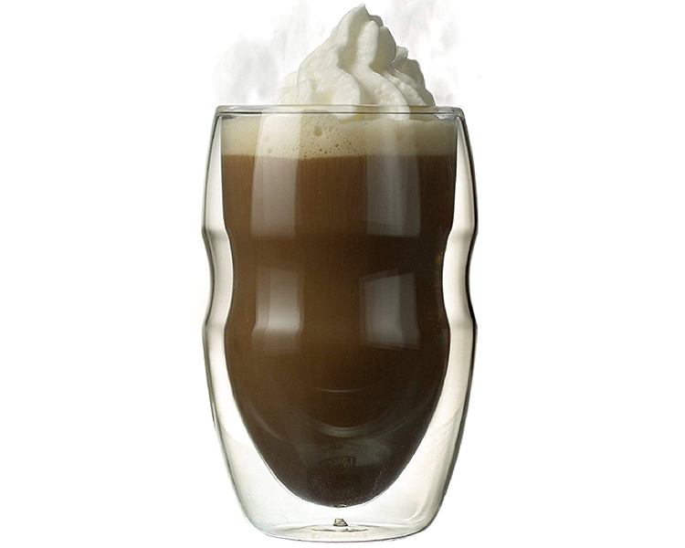 The patented Serafino glasses are great for coffee, cappuccinos, hot or iced teas, cocktails, frozen beverages and much more. Whether it is an occasion for a glass of wine, coffee, or some other beverage, borosilicate glass is completely resistant to acids, and your Ozeri glasses will never lose their original sheen. Each set contains 2 handmade glasses designed for lifetime use. The Serafino glasses are completely microwave and freezer safe, and ship in an elegantly printed and carefully packaged box with a No-Hassle warranty.