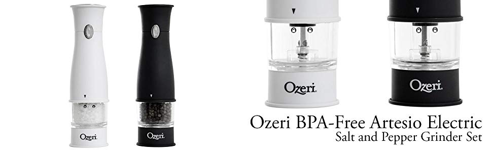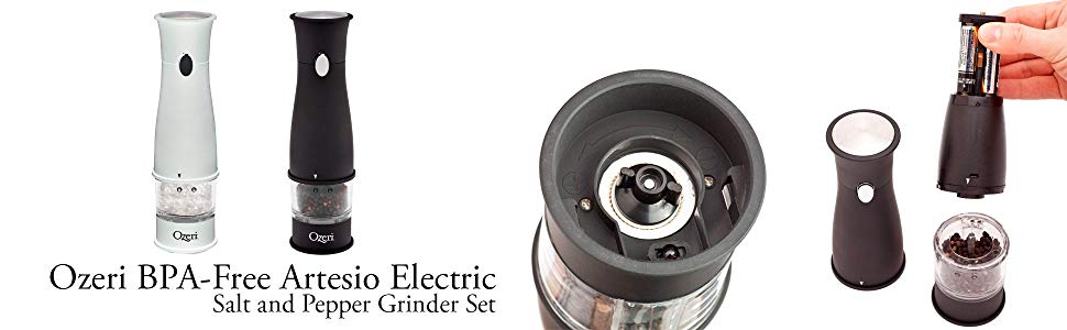 The Artesio Electric Salt and Pepper Grinder Set is the ultimate accompaniment to any dinning setting where a touch of fresh salt and pepper goes a long way. Designed to operate effortlessly, each Artesio grinder combines an adjustable ceramic grinding burr mill with battery-power for push-button easy dispensing of salt or pepper. Marketed almost exclusively by word of mouth, these battery powered grinders consistently win applause with their ability to grind salt and peppercorns. The Artesio Electric Salt and Pepper Grinders each boast an ultra-soft non-slip grip, a built-in light for low-lit dining ambiances, BPA-Free material and durable construction. The Artesio Grinders require no assembly and each runs on 4 AA batteries (not included).