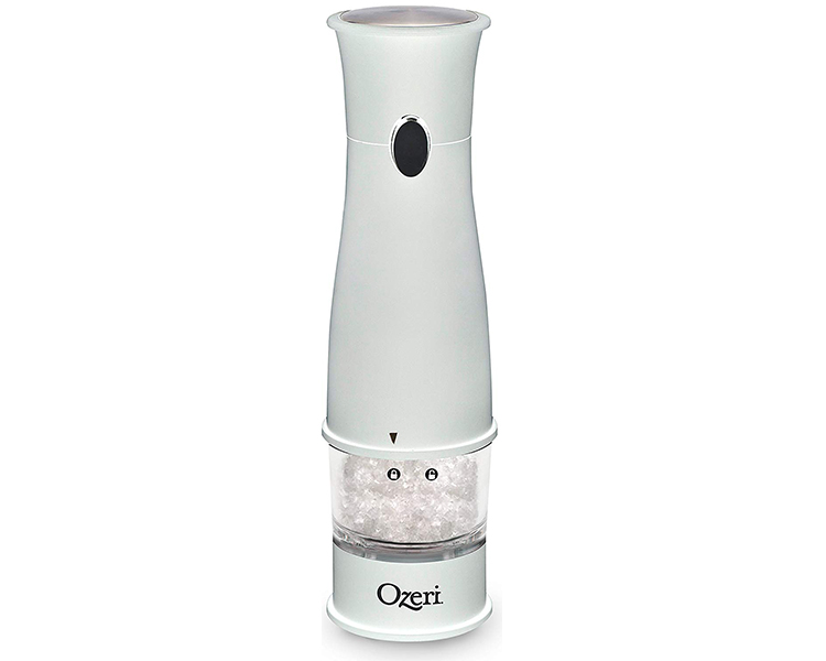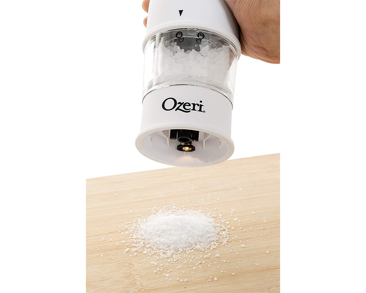 - Battery-powered for push-button easy dispensing of salt or pepper, with a see-through container that makes monitoring salt and pepper levels easy.