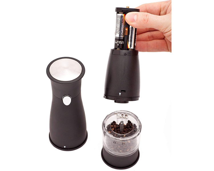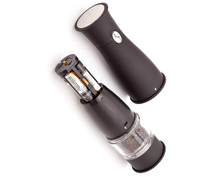 The Ozeri Artesio Electric Grinder by Ozeri is the ultimate accompaniment to any dinning setting where a touch of fresh pepper (or salt) goes a long way. Designed to operate effortlessly, the Artesio combines an adjustable ceramic grinding mechanism with a battery-powered engine for push-button easy dispensing of pepper (or salt). Marketed almost exclusively by word of mouth, the battery powered Artesio consistently wins applause with its ability to grind peppercorns, salt and spices. The Artesio Electric Grinder by Ozeri also boasts an ultra-soft non-slip grip and a built-in light for low-lit dining ambiances. The Artesio requires no assembly and runs on 4 AA batteries (not included).