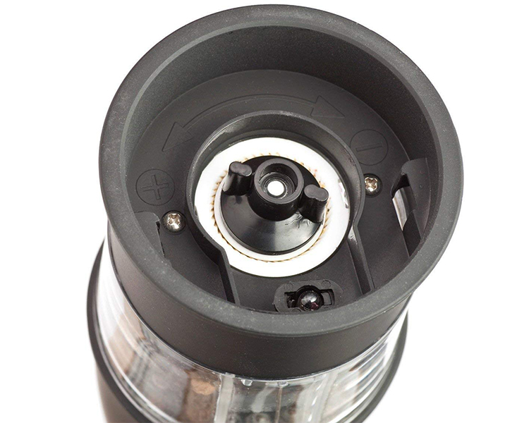 - Durable ceramic mechanism easily grinds peppercorns, salt and spices.