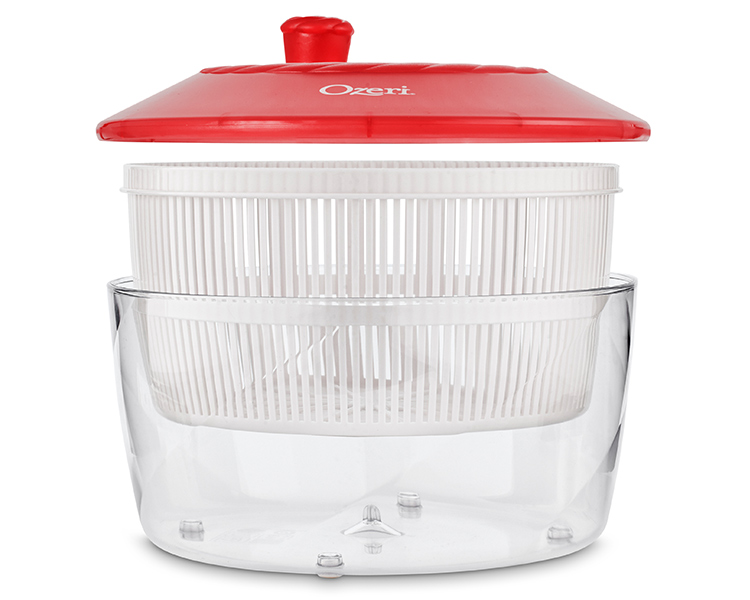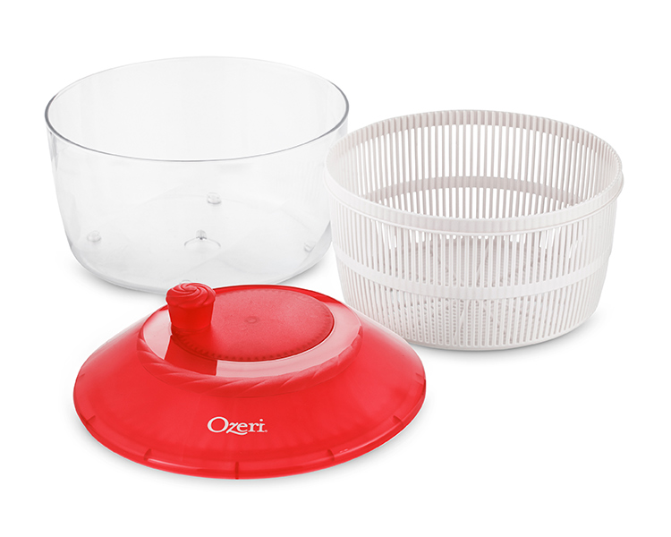 Available in three colors, the Italian made Ozeri Fresca Salad Spinner and Serving Bowl combines simplicity and ease-of-use with exceptional performance. The Ozeri Fresca Salad Spinner features a large 4.4 qt / 4.2 L colander and bowl made entirely of food-safe and BPA-free materials that accommodates all your greens and herbs. The outer bowl doubles as an elegant serving dish for any salad or any other dish. Developed under exacting standards to deliver frictionless perfection, the Fresca Salad Spinner delivers spin action with minimal effort and without disruptive noise. Designed for lifetime use and dishwasher-safe, the Ozeri Fresca Salad Spinner is supremely easy to use and even easier to clean. Made in Italy.