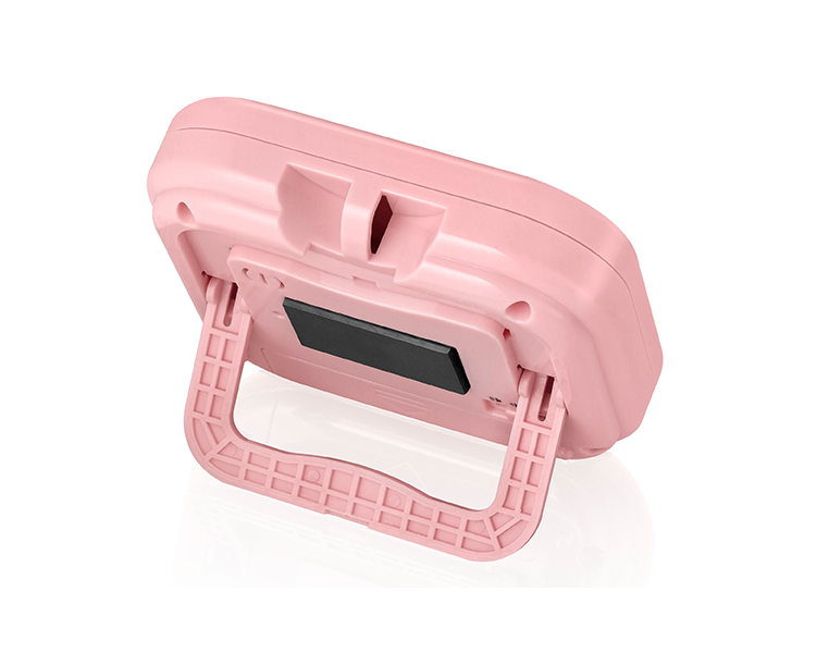 - Versatile design features a magnetic back that adheres to the fridge, a retractable kickstand for counter use, and a hanging hook