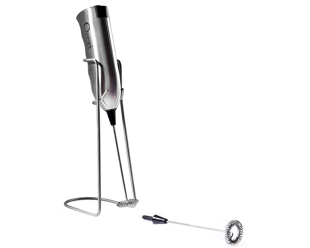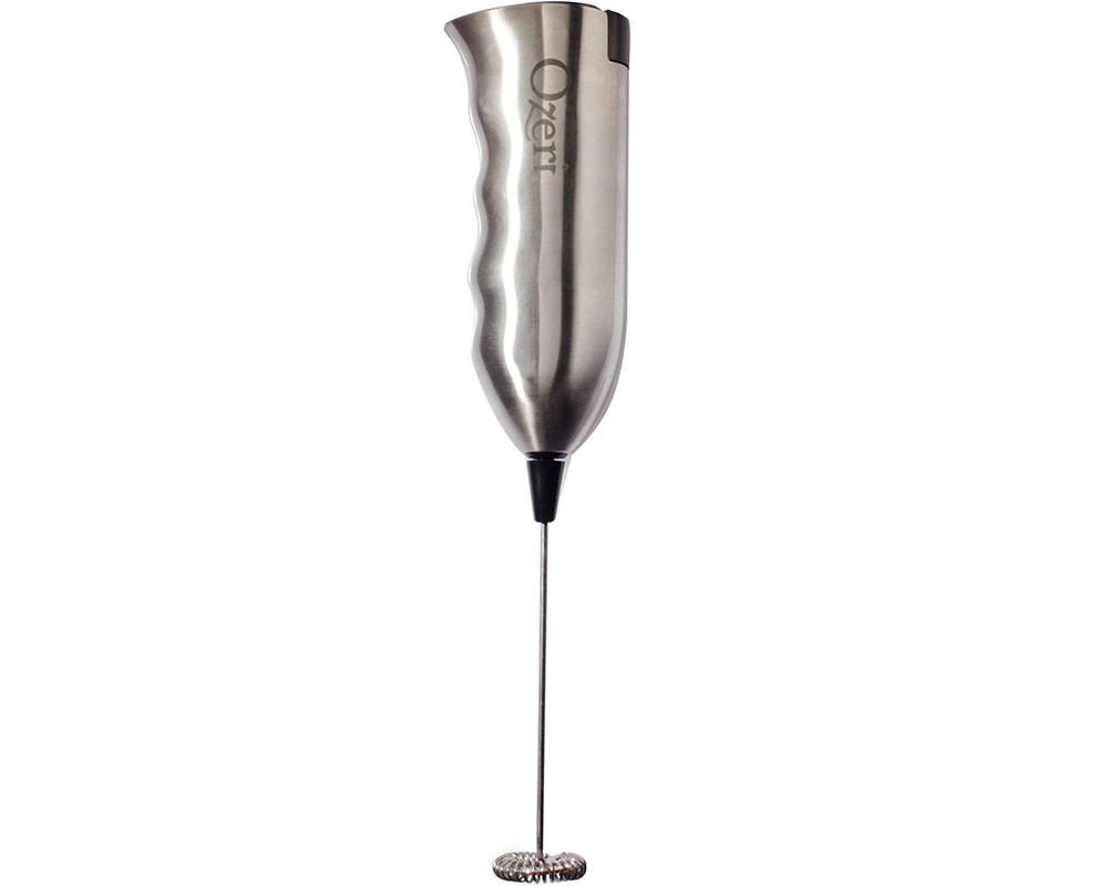 The powerful motor in the Ozeri Milk Frother spins at over 15,000 RPMs and activates instantly with results in 10 to 20 seconds. The Ozeri Milk Frother foams all kinds of milk (whole/regular/skim milk, soy milk, almond milk and coconut milk) alike for fluffy hot cafe lattes or cold chocolate malts in seconds. The Ozeri Stainless Steel Milk Frothing Set is made of food and drink-safe materials, and ships with the electric frother, stand, extra frothing attachment, pitcher and 2 AA batteries. Your satisfaction is guaranteed.
