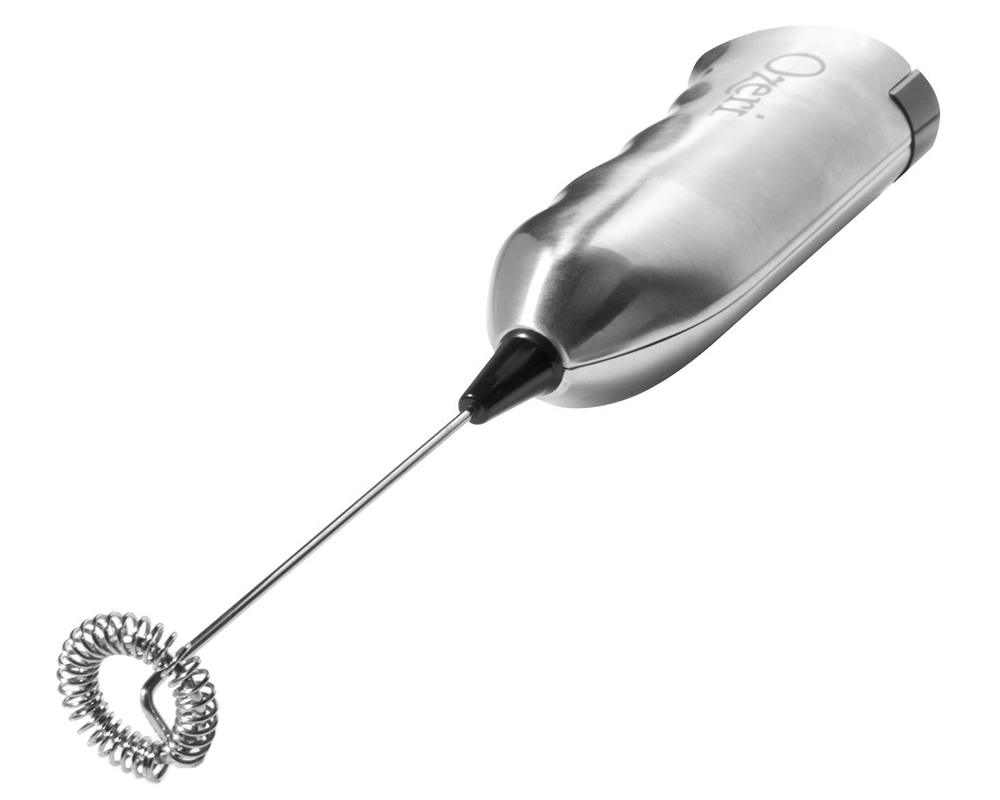 The Ozeri Stainless Steel Milk Frother, Whisk and Frothing Pitcher Set provides everything needed to whip up and serve delicious and picture perfect frothy foam in as little as 10 seconds. Petite yet powerful, the Ozeri Milk Frother is perfect for steam-free cappuccinos, lattes, espressos, hot chocolates, shakes, frappes and other milky drinks. The Ozeri Frothing Set includes an elegant 12 oz (350 ml) Frothing Pitcher made of 304 high-quality Stainless Steel that features a forged pouring spout and sturdy handle.