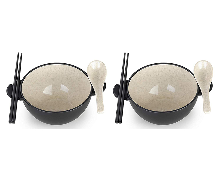 - Set contains two 33.5oz (993ml) Ramen bowls, two 5.5" (14cm) spoons and 2 sets of 8.6" (22cm) chopsticks.
