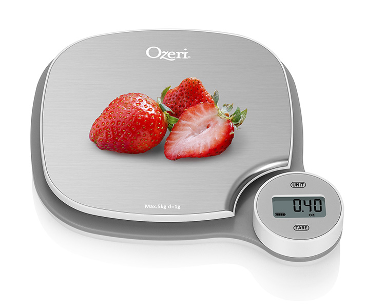 Avoid all the last-minute stress when batteries go out as well as the fuss with battery replacements, and never go scavenging for batteries again with the new Ozeri ZK27 Kinetic Kitchen Scale, in Stainless Steel. Requiring just a single rotational twist, the Ozeri Kinetic Kitchen Scale converts your kinetic energy into a digital charge so that you can accurately weigh everything from fine ingredients to dietary portions for that next healthy meal. Equipped with high-precision sensors, the Ozeri Kinetic Scale accurately weighs from 5 g to 5000 g (176.4 oz) in graduations of 1 gram or 0.4 oz, immediately displayed on its LCD screen. A short rotational twist of the bezel provides 3 minutes of usage time. The ZK27 Kinetic Kitchen Scale's Unit button lets you convert between g, oz, water-ml, and milk-ml with push-button ease, and its handy Tare button automatically subtracts the weight of any pouch or container to isolate the net weight of the item being weighed. Its Unit and Tare buttons are separated from the main stainless steel weighing platform, which prevents the detection of weight when pressing either button, thereby eliminating the common measurement flicker seen in other scales. The ZK27 Kinetic Kitchen Scale weighing platform utilizes the highest grade SUS304 stainless steel material with a fingerprint resistant coating, and is backed by Ozeri’s No-Hassle Warranty.