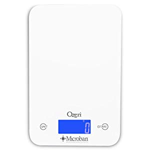 The Ozeri Touch II Professional Digital Kitchen Scale with Microban Antimicrobial Product Protection is the industry's first kitchen scale to include antimicrobial protection that disrupts the growth of bacteria that can cause stains, odors and product deterioration. Infused at the point of manufacturing, Microban antimicrobial protection works for the lifetime of the scale and helps maintain surface cleanliness. On an unprotected kitchen scale surface, bacteria can double in number every 20 minutes.