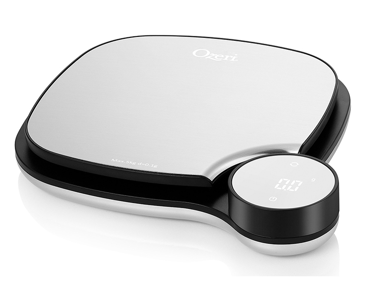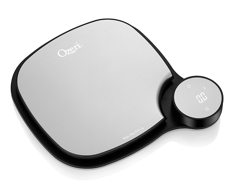 The new Ozeri ZK26 Stainless Steel Kitchen Scale defines the latest in precision weighing technology with a 0.1 g / 0.01 oz graduation and a max weight capacity of 5000 g / 176.4 oz to help you achieve your diet, health, and wellness goals. The ZK26 utilizes the highest grade SUS304 stainless steel material with a fingerprint resistant coating in an inspiring design. Its Unit and Tare buttons are separated from the main weighing platform, which prevents the detection of weight when pressing either button, thereby ensuring the highest possible accuracy and eliminating the common measurement flicker seen in other scales. Fitted with advanced 0.1 g sensors, the ZK26 answers the need for measurement accuracy for everything from the most delicate tea leaves to large portions. The ZK26’s large weighing platform accommodates small and large items, making it just as capable in the kitchen and garden as it is in the science room or as a postage scale. An indispensable companion for the serious cook, the ZK26 Unit button lets you convert from metric grams to ounces with push-button ease, and its handy Tare button automatically subtracts the weight of any pouch or container to isolate the net weight of the item being weighed. The ZK26 displays weighing results dynamically with no latency on its white, high-contrast LED screen, offering immediate response times for the fast-paced culinary artist. The new Ozeri ZK26 Stainless Steel Kitchen Scale impresses with its unique design, and ships with 2 AAA batteries included and an easy-access battery compartment. It automatically powers off after 2 minutes to preserve battery life. Satisfaction guaranteed by Ozeri's No-Hassle Warranty.