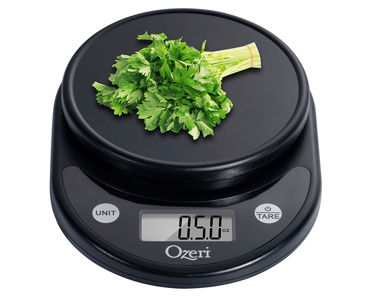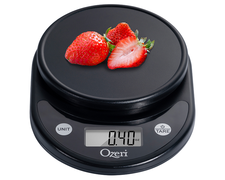 A winner of awards from brands such as the Food Network, New York Magazine’s The Strategist, The New York Times’ Wirecutter, CNN Underscored, and proudly selected by the Dana Farber Cancer Institute for a Harvard Medical School study on weight loss and the prevention of breast cancer, the Pronto Digital Kitchen Scale by Ozeri is an uncompromising scale for the kitchen and home. The Pronto is built with the latest sensor technology to ensure an accurate and immediate response for the fast-paced chef and features an enlarged weighing platform to accommodate larger bowls and food items. The ultimate companion for the serious cook, the Pronto's large Unit button lets you change the unit of measurement with push-button ease, with 6 different units to choose from (g, lbs, lbs:oz, oz, ml, kg) - e.g. easily convert 539 grams to 1.188 pounds to 1 pound 3 ounces to 19.01 ounces to 539 ml to 0.539 kg. The large LCD provides a wide viewing angle. Manufactured to rigorous quality specifications, the Pronto weighs up to 11.24 pounds (5100 grams) in graduations of just 0.04 ounces (1 gram) to help you achieve your diet and health goals. The Pronto comes equipped with an ever-handy Tare button that subtracts the weight of any bowl or container to calculate the net weight of your ingredients. The Pronto's Tare and Unit buttons provide an audible and tactile click confirmation, so you never have to push twice when preparing meals in a hurry. Both the Unit and Tare buttons are separated from the weighing platform to prevent movement when pressing either button, ensuring the highest accuracy. Elegantly designed and available in multiple colors, the Pronto is sure to complement any kitchen decor. The Pronto also doubles as a postage machine for mail or a scale for children's science projects. The Pronto cleans quickly and stores easily, runs on 2 AAA batteries (included) with an easy-access battery compartment, and features a programmable 2-to-5-minute automatic power-off setting.