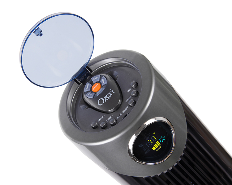 The Ozeri Ultra Wind Fan also includes 3 selectable airflow patterns designed to foster sleep, relaxation and comfort, and an intelligent LED screen with room temperature display. All of the Tower Fan's features, including the room temperature display, are illuminated on the Fan's multi-colored bright LED screen, and can be activated via the included enhanced-range remote or via the built-in control panel. The new and improved LED screen now features a light-dimming night mode that dims the screen for light sensitive sleepers. The Ozeri Ultra Wind Fan also features a 12 hour timer that can be programmed in 1 hour increments with push-button ease, and ships included with a removable extension column that adjusts the Fan's height from 32" to 42".