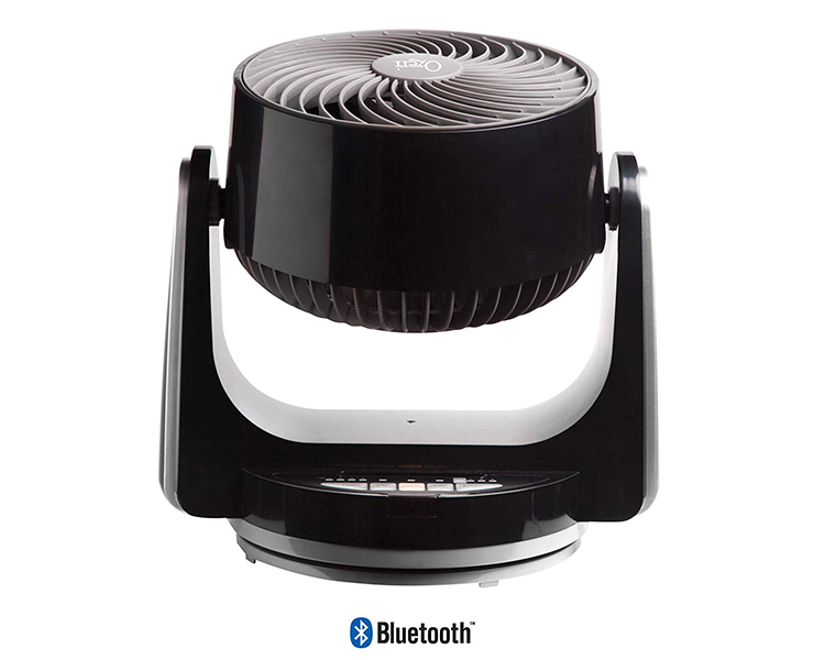 The 4 speeds allow you to choose between a cool breeze, refreshing wind, a more powerful stream of air, and a turbo mode for maximum cooling. The 4-hour programmable timer allows you to set the fan for the hottest part of the day, or to automatically turn off after you fall asleep. All of the Brezza III fan’s features can be conveniently controlled via the free Ozeri iOS and Android smartphone app, the included extended-range remote, or via the fan's front control panel. The Brezza III Dual Oscillating Desk Fan is simply one of the most effective fans at overcoming summer heat or simply refreshing a stale room, and with its Bluetooth Technology, you never have to worry about misplacing the included remote. Ships fully assembled with a remote control and convenient carrying handle and weighs only 6 lbs for easy transporting.