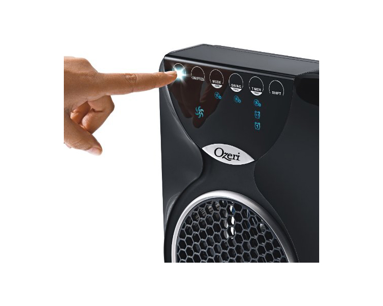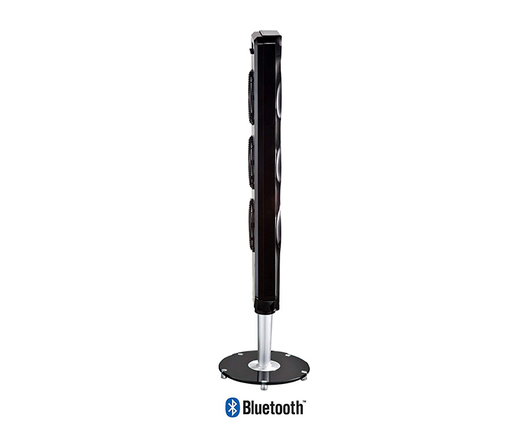 Now featuring Bluetooth technology for smart phone control, the new Ozeri 3x 44 inch Bluetooth Tower fan defines the latest in stylistic innovation with its visually stunning design, slim form factor and elegant glass base. At less than 3 inches thick, the svelte 3x Bluetooth fan boasts 3 independently controllable fans with passive noise cancellation technology for remarkable airflow velocity at less than 50DB. The 3x Bluetooth fan's passive noise reduction technology utilizes the physics of blade curvature to generate mitigating sound waves that reduce blade noise. The 3x Bluetooth fan is engineered with 3 independently controllable fans and 3 fan speeds, offering the ultimate customized airflow.