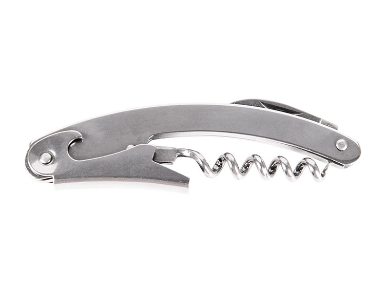 - 5-piece set includes a stainless-steel corkscrew with foil cutting knife, drip-stop collar, combination wine pourer/stopper, and foil cutter.