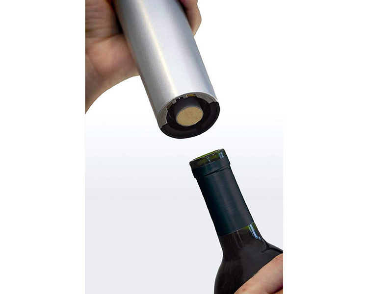 - Opens a bottle of wine in just seconds with push button ease