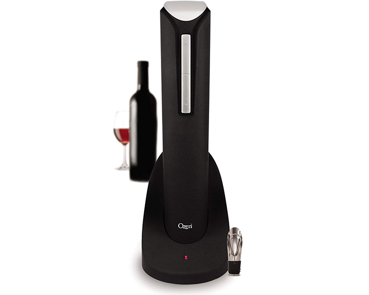 The Ozeri Pro Electric Wine Opener in Rubberized Black makes opening wine bottles easy while entertaining your guests at the same time. Designed for home and restaurant use, its latest generation battery now opens up to 40 wine bottles with the gentle push of a button, all on a single charge. The Ozeri Pro Electric Wine Opener is completely cordless and includes an elegant recharging base with an LED charging indicator. The Pro also ships with a free always handy foil cutter to remove wine seals and a bonus wine pourer and stopper. The Ozeri Pro Electric Wine Opener opens both natural and synthetic corks. It also boasts a new ultra light-weight design, a faster motor and an ergonomic rubberized soft grip for effortless handling. Use it at home or take it with you to impress your hosts and guests before the first sip.