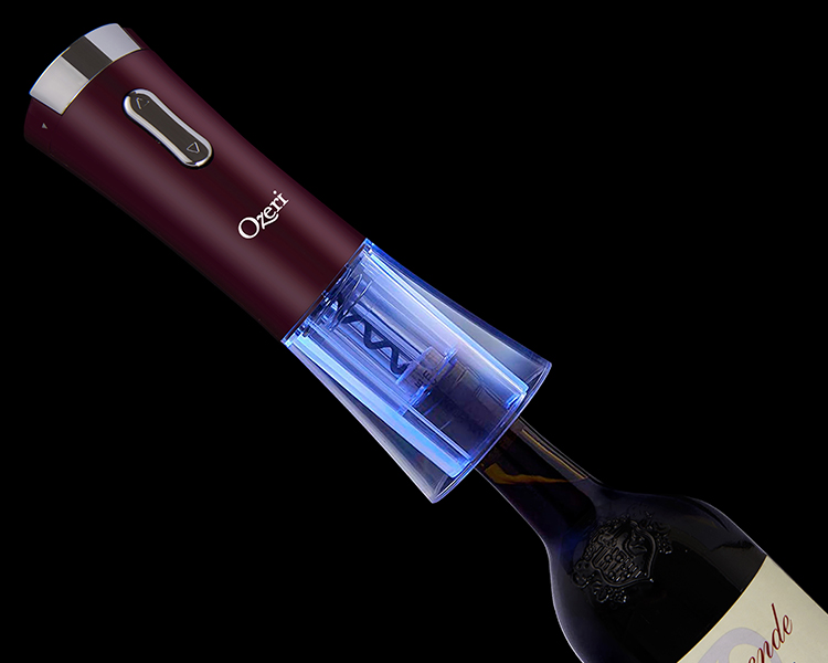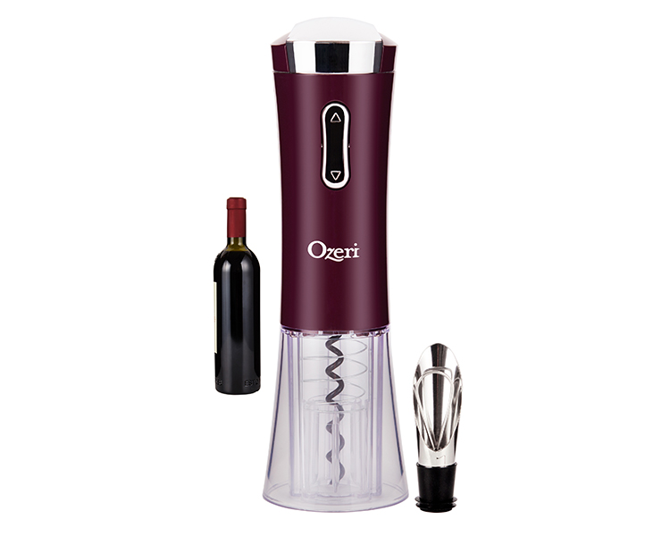 The Ozeri Nouveaux Electric Wine Opener combines an European inspired cordless design with a new ultra fast rechargeable motor that opens up to 40 bottles, all on a single charge. With the Ozeri Nouveaux Electric Wine Opener, opening a bottle of wine is effortless, quick and entertaining. The Nouveaux introduces a celebrated design incorporating elegant curves that allow it to stand vertically without the use of a separate base or stand. Designed for home and restaurant use, the Ozeri Nouveaux Electric removes a wine bottle cork with the gentle push of a button. Unlike other electric wine openers, it features a transparent corkscrew shell that makes the cork removal process completely visible. When in use or while being recharged with the included USB-A to USB-C fast-charging cable, the Nouveaux illuminates its transparent bottom shell with calming blue indicator lights. A completely cordless wine opener, the Nouveaux opens both natural and synthetic corks, and features an ergonomic grip for easy handling. With its fashionable design, high quality materials and durable construction, The Ozeri Nouveaux Electric Wine Opener is the ultimate companion to every wine bottle.