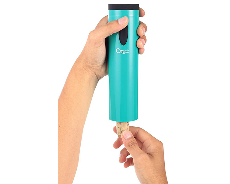Introducing the Ozeri Fascina Electric Wine Opener. Capable of opening up to 60 bottles on a single set of inexpensive AAA batteries, the Fascina requires no more effort than pushing a button for cork removal. The Ozeri Fascina Electric Wine Opener is completely cordless and includes a compact and integrated foil cutter that removes easily. Capable with both natural and synthetic corks, the Fascina boasts an ultra light-weight design for effortless handling. Using the Ozeri Fascina Bottle Opener couldn't be easier. Start by using the included foil cutter to remove the wine bottle seal. Simply press the Down button to activate cork removal. Then press the Up button to release the cork. Voila. Impress and entertain while opening your next bottle of wine, with the Ozeri Fascina Electric Wine Opener. Runs on 6 AAA batteries (included). Your satisfaction is guaranteed.