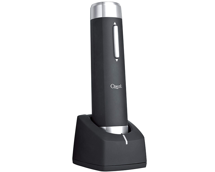 The Ozeri Prestige Electric Wine Opener makes opening wine bottles easy while entertaining your guests at the same time. Designed for home and restaurant use, its latest generation battery now opens up to 80 wine bottles with the gentle push of a button, all on a single charge. The Ozeri Prestige Electric Wine Opener is completely cordless and includes an elegant recharging base with an LED charging indicator. The Prestige also ships with a free aerating pourer to enhance aromas and a compact foil cutter to remove wine seals. The Ozeri Prestige Electric Wine Opener opens both natural and synthetic corks. It also boasts a new ultra light-weight design, a faster motor and an ergonomic rubberized soft grip for effortless handling. Use it at home or take it with you to impress your hosts and guests before the first sip.