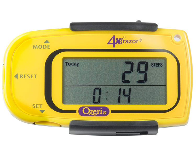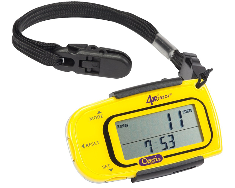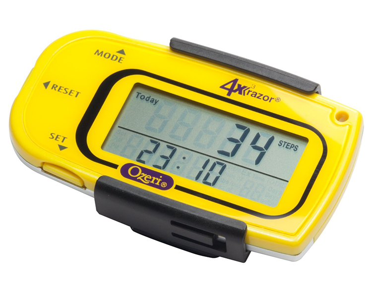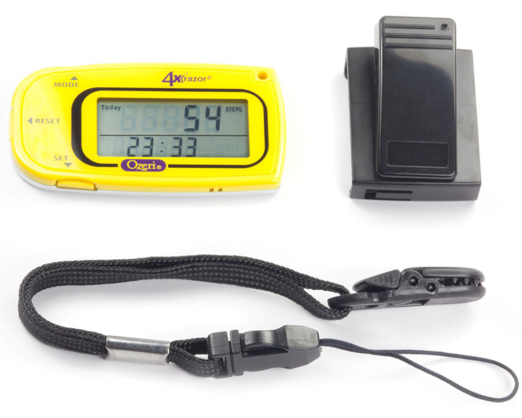 It includes a detachable lanyard and belt clip for the ultimate convenience. A personal trainer par excellence, the 4x3razor is used by professional 100 mile ultra-runners to accurately record steps, distance, calories consumed, fat burned and exercise time. This advanced digital pedometer counts up to 1 million steps with 30-Day Memory, and includes a built-in Clock and Sports Timer with Auto Sleep technology. The 4x3razor now features MotionLock to prevent unintended motion detection, such as when traveling. It also filters out vibrations and only begins counting after it detects a sequence of continuous steps for greater accuracy. The 4x3razor Digital Pedometer ships with an installed and extra Lithium battery, a belt clip and detachable lanyard and instruction manual. Your satisfaction is 100% guaranteed.