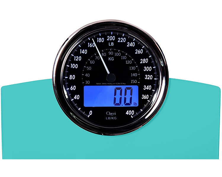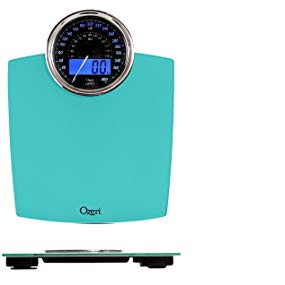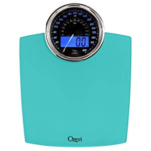The Ozeri Rev Digital Bathroom Scale with Electro-Mechanical Weight Dial is the world's first weight scale to incorporate a synchronized electro-mechanical Dial and LCD that automatically illuminate and point to your weight in lbs and kg, for easy-to read results in all light conditions and from any angle. Boasting a visually arresting design, the Ozeri Rev scale features a huge 5.5 inch mechanical dial with an integrated digital blue-backlit LCD, accented by stylish chrome to create a distinctive retro look, and displays digital results with class-leading 50 gram Sensor Technology. This professional quality scale features an oversized platform made of impact-resistant tempered glass with slip-resistant feet for ideal stability, and a new built-in alarm that reminds you to measure your weight at the same time each day.
