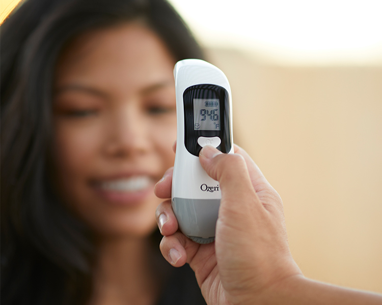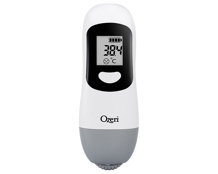 Requiring a simple scroll of the bottom wheel, the Ozeri Kinetic Non-contact Forehead Thermometer converts kinetic energy into a digital charge so that you can accurately check for fever or measure an object’s temperature without ever needing to search for batteries. A few slides of the kinetic wheel conveniently located at the bottom of the thermometer is all it takes to generate a sufficient charge and take an accurate measurement of body temperature. The Ozeri Kinetic Thermometer is designed for both children and adults, and once charged via its kinetic motion technology, generates a precise measurement in as little as a second. The Ozeri Kinetic Thermometer utilizes infrared technology for touchless measuring, without ever requiring contact, for shared and sanitary use. Results are displayed in either Fahrenheit or Celsius to the nearest 0.1°F / 0.1°C, with a measuring range of 93.2°F ~ 109.4°F (34°C ~ 43°C). Though battery-free, the Ozeri Kinetic Thermometer offers all the benefits of modern digital thermometers via its clear LCD that displays measurement results and charge status. Its LCD additionally displays a smiley or frowning face based on the detection of a normal temperature or fever. The Ozeri Kinetic Thermometer generates an audible single beep to confirm a normal temperature, and a long beep followed by a short one as an alarm to indicate the detection of a fever. Clinically validated, and manufactured to ISO 80601-2-56, IEC/EN 60601-1 and IEC/EN 60601-1-2 medical standards, the battery-free Ozeri Kinetic Non-contact Forehead Thermometer is backed by Ozeri’s No-Hassle Warranty, with your satisfaction guaranteed.
