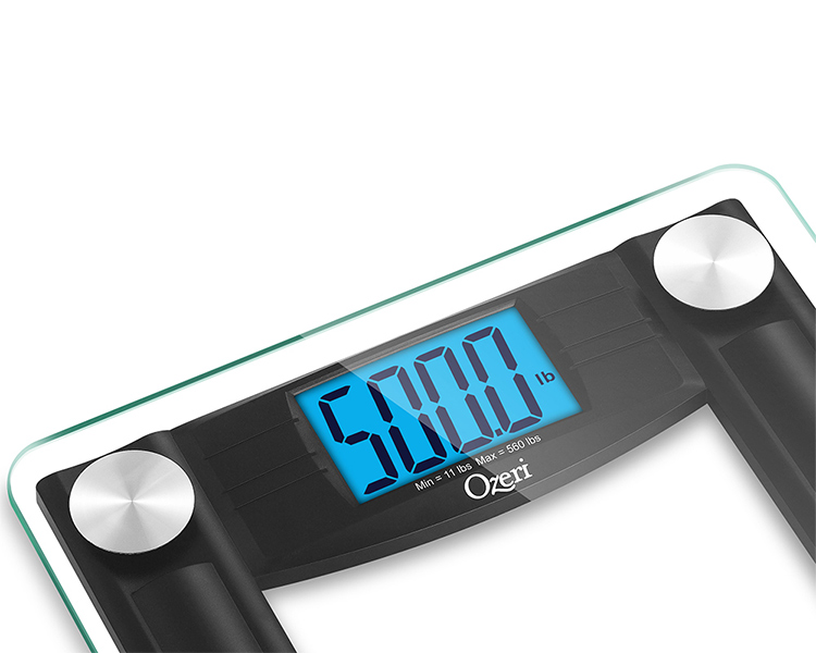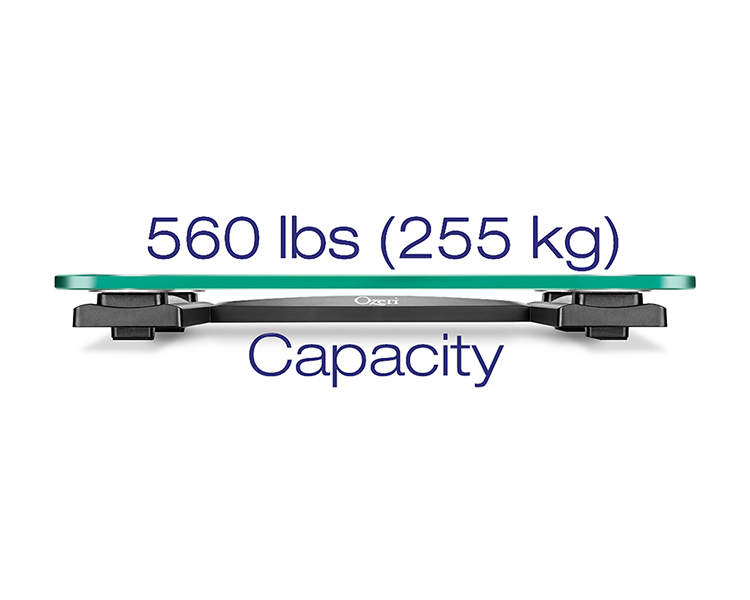 The Ozeri ProMax 560 lbs (255 kg) Digital Bath Scale features the highest weighing capacity for the most demanding muscle-building and weight-loss applications. Equipped with auto calibration and 50 gram sensor technology, the Ozeri ProMax Scale boast weighing precision capability of 0.1 lbs / 0.05 kg – a 100% improvement over the 0.2 lbs / 0.1 kg graduation found on standard weight scales. The Ozeri ProMax uses 4 custom engineered sensors to capture weights up to 560 lbs or 255 kg, with industry-leading 50 gram graduation accuracy. It accurately displays results on its latest generation 4.3" blue backlight LCD, providing clear and easy-to-read results under all ambient light conditions, and from virtually any angle.