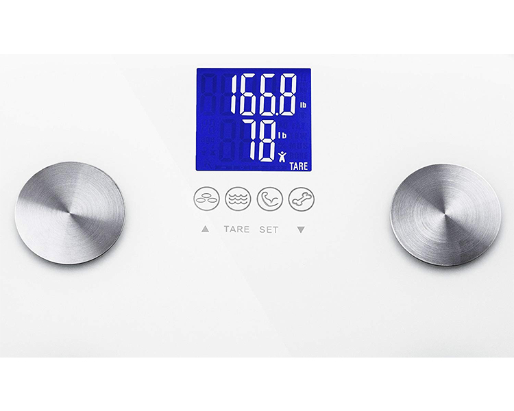 - Utilizes an advanced algorithm that instantly calculates your weight, body fat, hydration, muscle and bone mass.