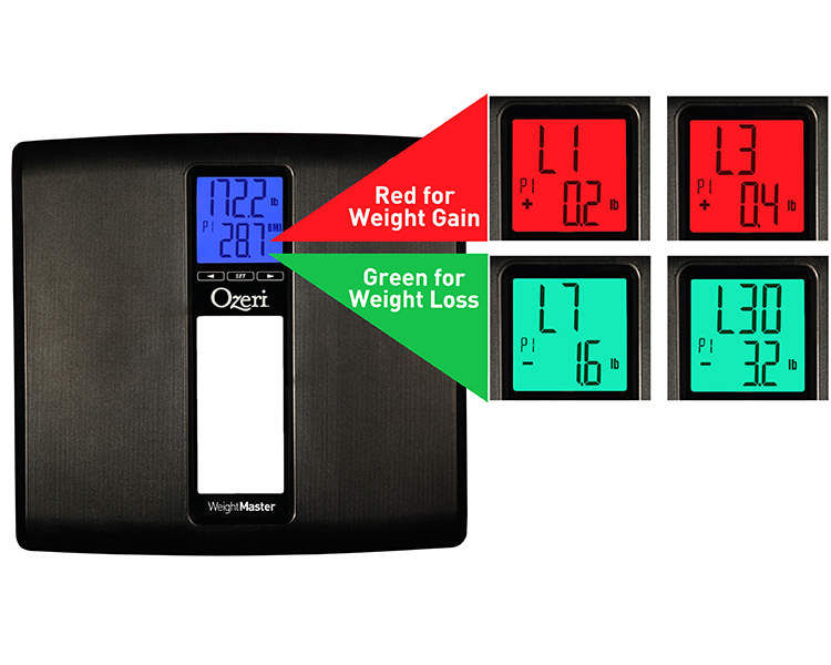 - Smart LCD with Color Alert Technology – allows you to focus on your weight trend instead of the actual numbers by displaying your weight change in color, with a GREEN illumination for weight loss and RED illumination for weight gain